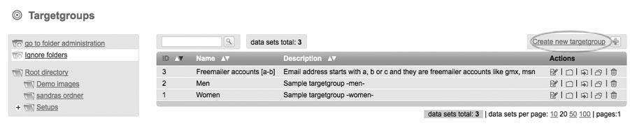 In dsmails, you are offered the option to sort the subscribers in target groups. There are many possibilities for organization – such as sex, age or interests. In order to simplify the beginning, 3 target groups are already defined in dsmails.