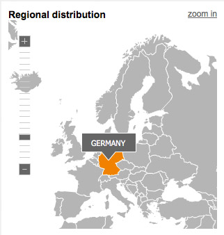 dsmails generated based on the IP addresses of subscribers an overview of the 'local distribution'. If openings were counted in one country, this will be color coded. By clicking on the country a magnified view appears and cities become visible as points. The larger the dots, the more Openings were counted in this city. Move the cursor over an item, you see the Openings to the location. The data relate to the unique Openings (unique).