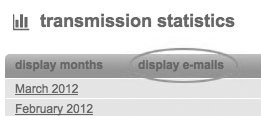 In the transmission- statistic you see the data collected from dsmails (Traffic, Total). Also you see, if exist, the numbers of test-sendings, clicks on the subsriber-link and the number of subscribers who have completed the optin-confirmation. Next to the view 'display months' you also can select 'display e-mails'. So dsmails outputs the above mentioned figures for each mailing.